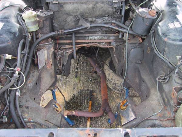 April 2001 ...April 8th, 2001Really went 'balls out' to get the 3.5 out of the P6 and after a solid day's scrabbling around under the car, the engine was persuaded to come out complete with gearbox. It was then just a simple matter of splitting the 'box from the engine and then removing the torque convertor and flywheel. The engine was then bolted to the shiny new engine stand bought especially for the job from Machine Mart.